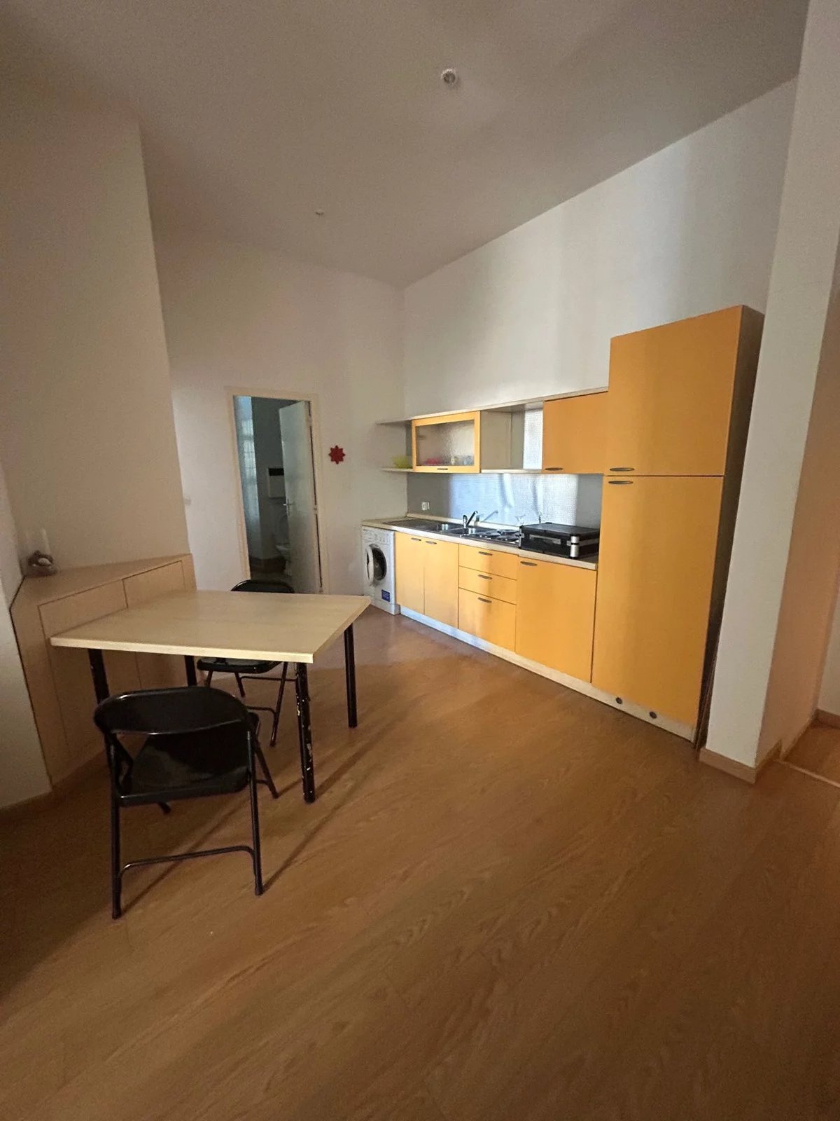 Le 2 pièces offre un séjour lumineux avec cuisine américaine, coin repas et salon, une grande chambre avec rangement, ainsi qu’une salle d’eau avec WC. Belle hauteur sous plafond optimisant les volumes.